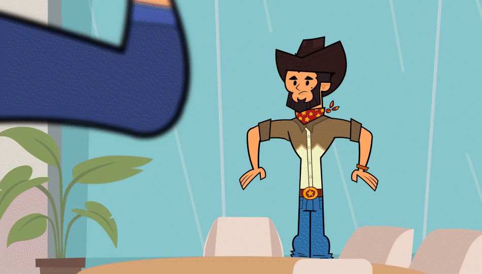 Aside from props, I’ve helped design a few graphics such as lower thirds used when characters are giving testimonials to the audience. The idea was to take the teams’ pre-designed logos and add a lower third with the characters’ names and occupation, with the graphic having a slanted edge for a sense of energy and action. I initially designed the still graphic and our storyboard director, Angie, created a template for how they could be animated. Since then, I’ve used her template to produce new lower thirds for future episodes. I was also tasked with designing a brand new logo for the project, for both the YouTube channel and Patreon page. The design is based on the Legacy Idol as seen in the show, using the visual of a bird, which is a running motif in the show (teams are named Emus and Toucans, and there’s the recurring seagull characters, Sealia). Just as birds are always watching us from above, the cameras always rolling and watching every move in reality TV.